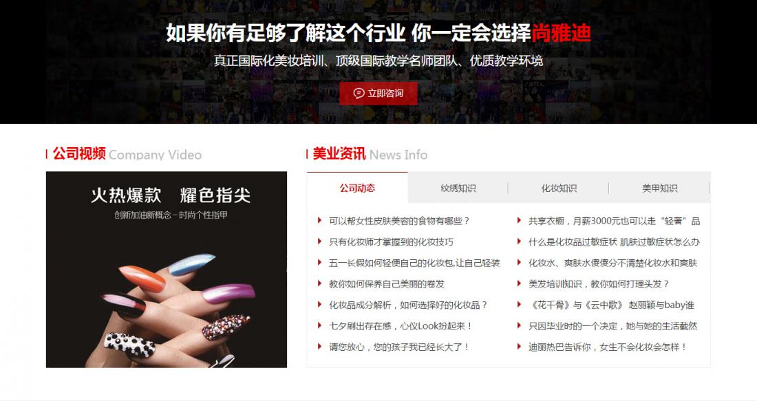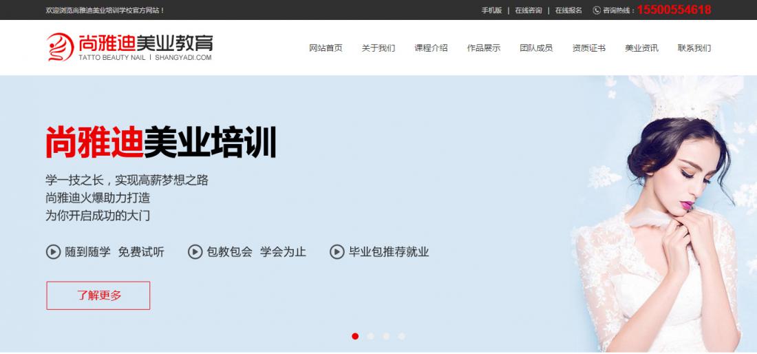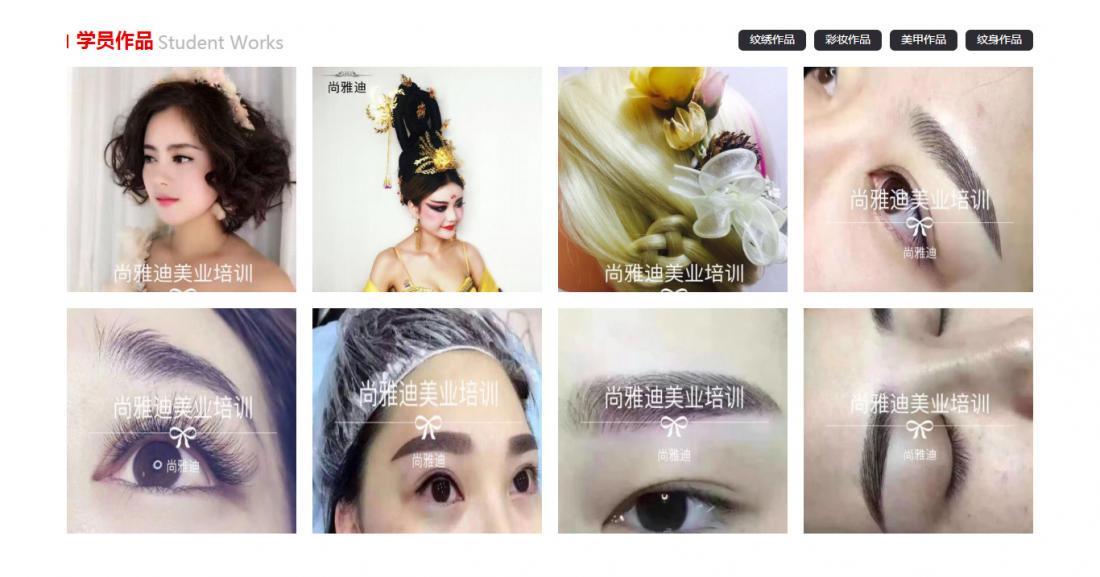 青海西寧尚雅迪美業培訓公司主要以化妝、美甲、紋繡、美睫、小紋身等進行專業培訓,其官方網站經我公司精心設計制作,于2017年8月9日正式上線使用。訪問網站