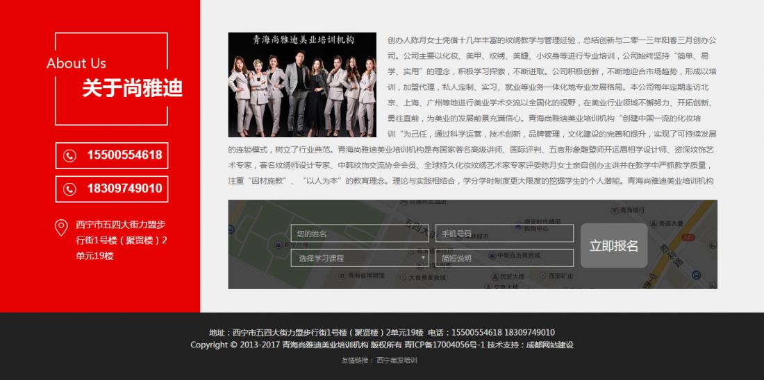 青海西寧尚雅迪美業培訓官方網站建設完成